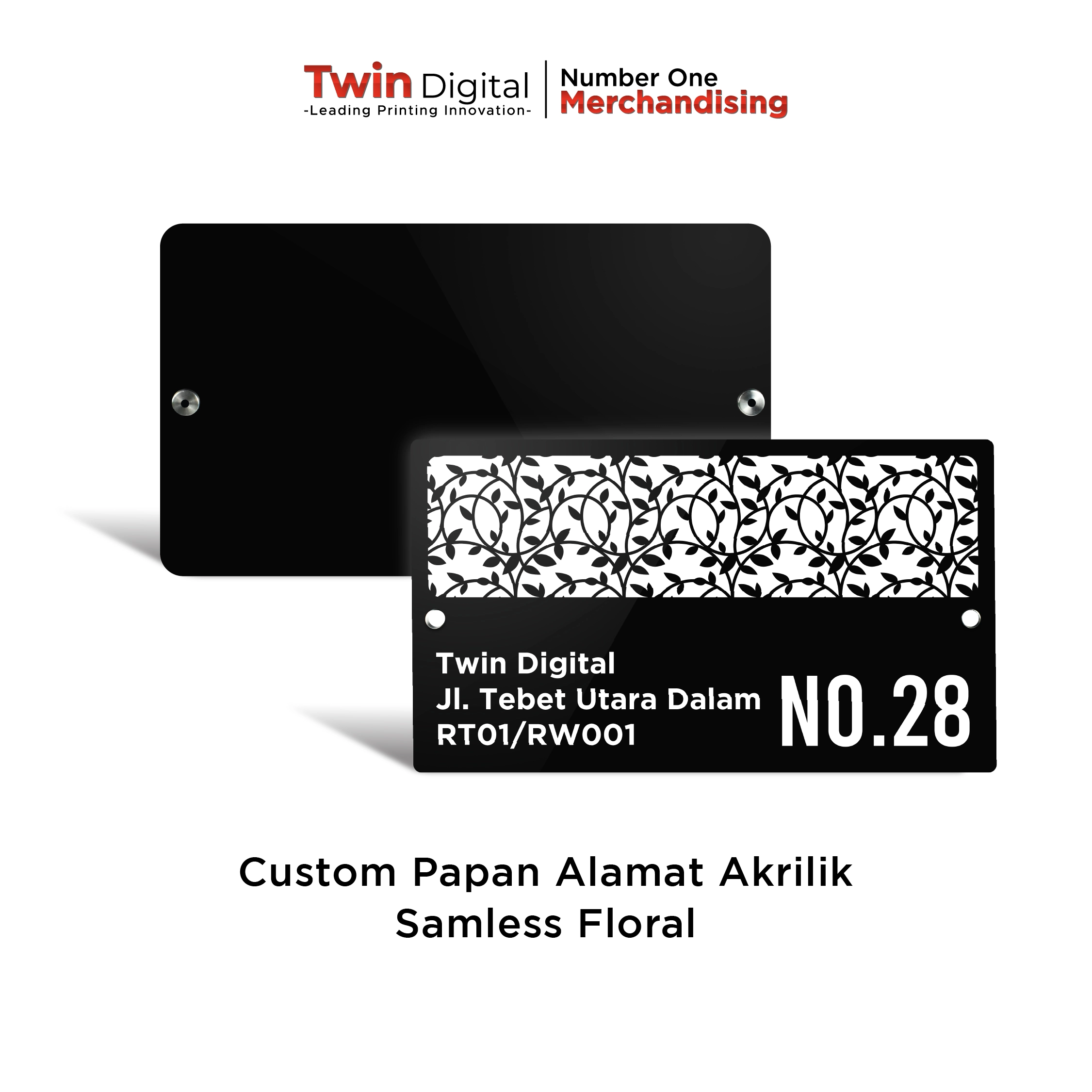 Custom Papan Alamat Akrilik Seamless Floral